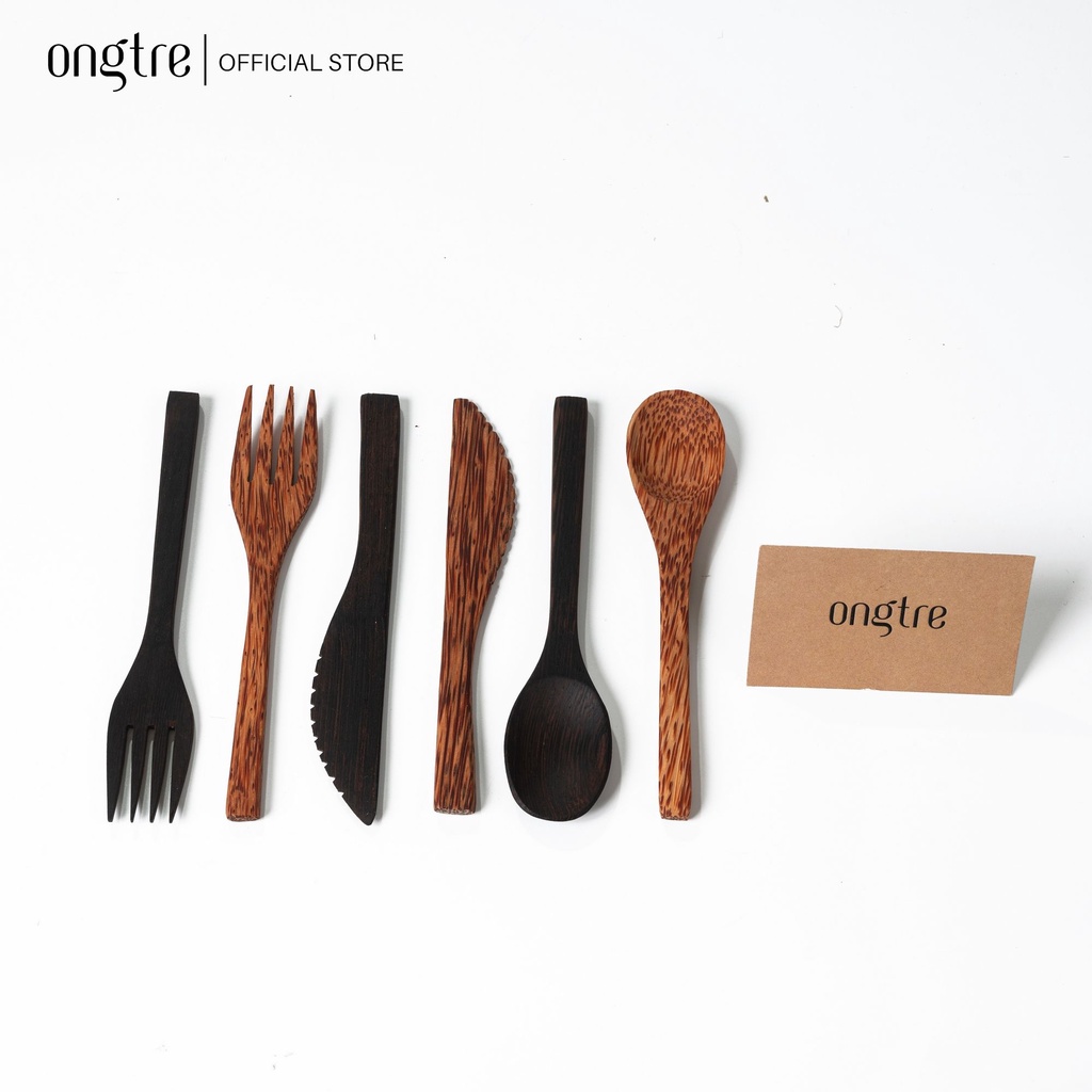 Bộ Muỗng, thìa, dĩa ONGTRE bằng gỗ Dừa tự nhiên thân thiện môi trường.